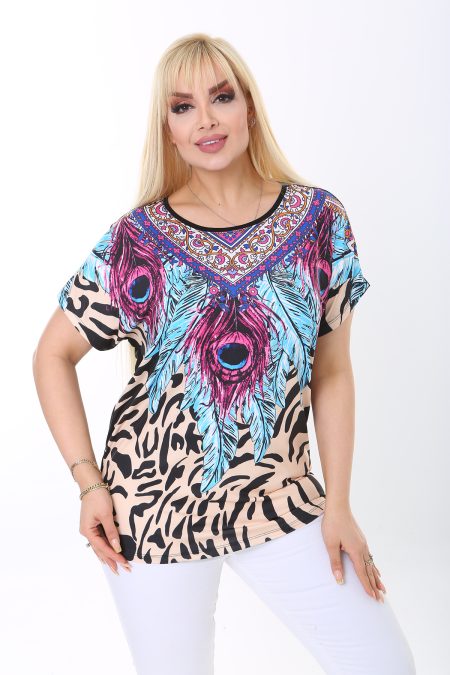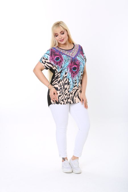 KADIN BÜYÜK BEDEN LİKRALI VİSKON LEOPAR DESENLİ TUNİK