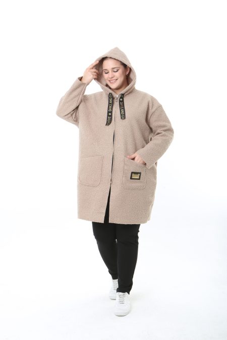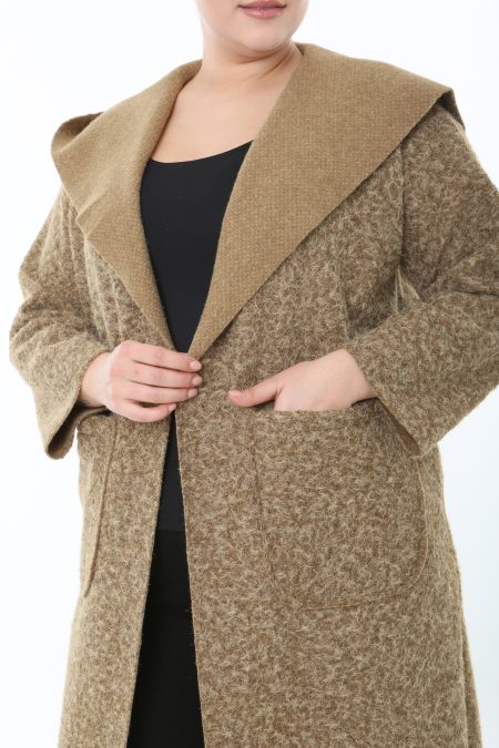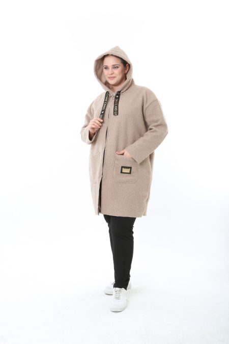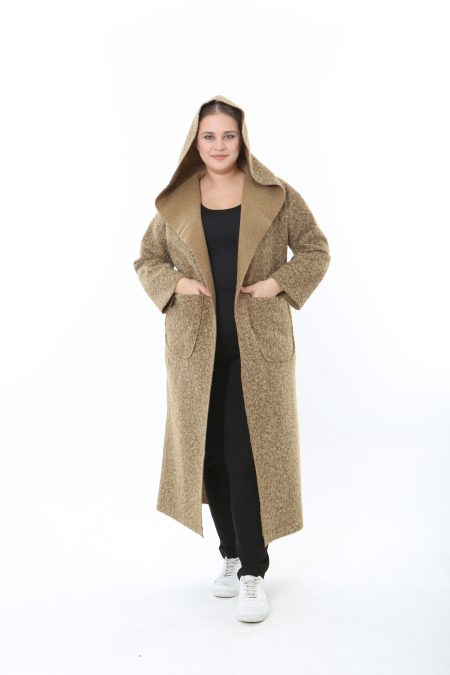 KADIN PONPON KAŞE KAPÜŞONLU BÜYÜK BEDEN VİZON KABAN