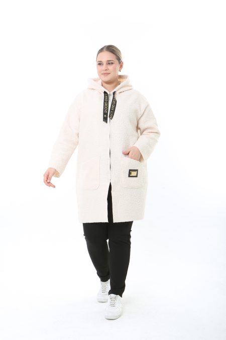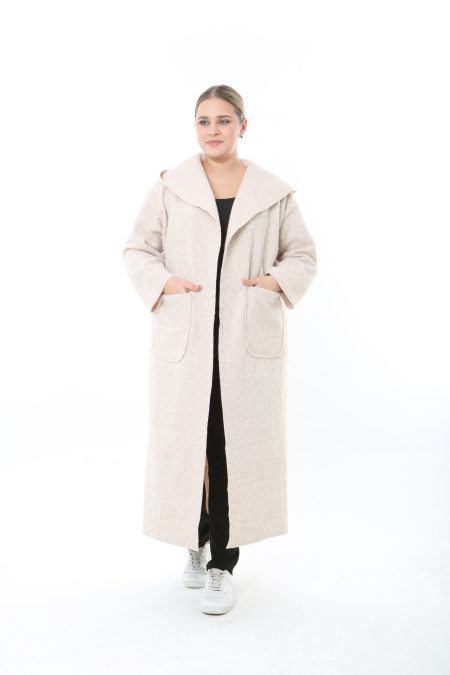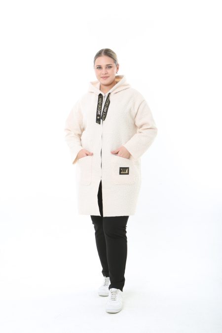 PONPON KAŞE KAPÜŞONLU BÜYÜK BEDEN KABAN