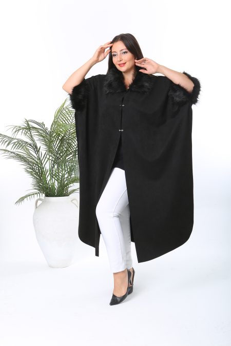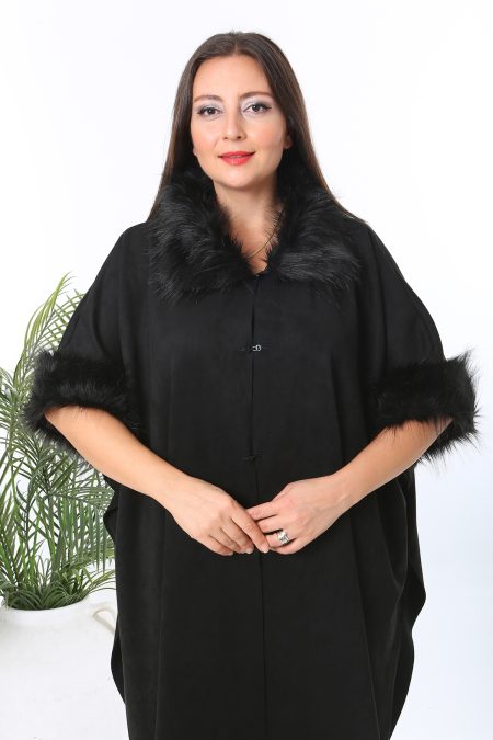 SİYAH PONPON KAŞE KAPÜŞONLU BÜYÜK BEDEN KABAN